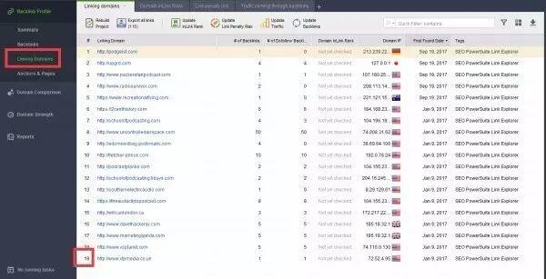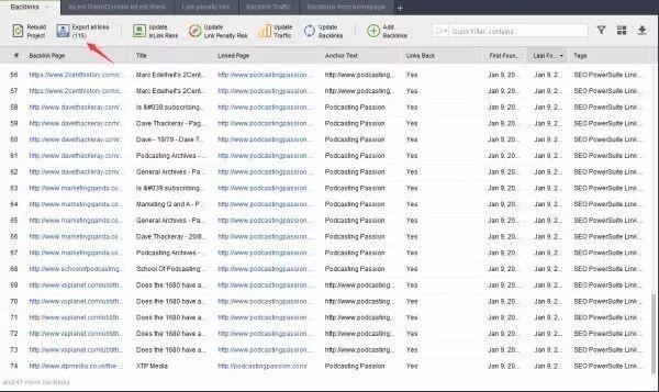 这个时候我们利用工具发现,podcastingpassion.com 这个网站总共有115条外链