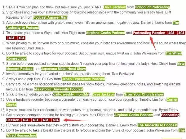 我发现在这个页面上:100 amazing podcasting tips from successful podcasters – TAP100