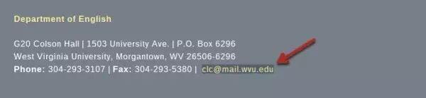 直接在网站的页脚找到email地址,如 clc@mail.wvu.edu ,如下图: