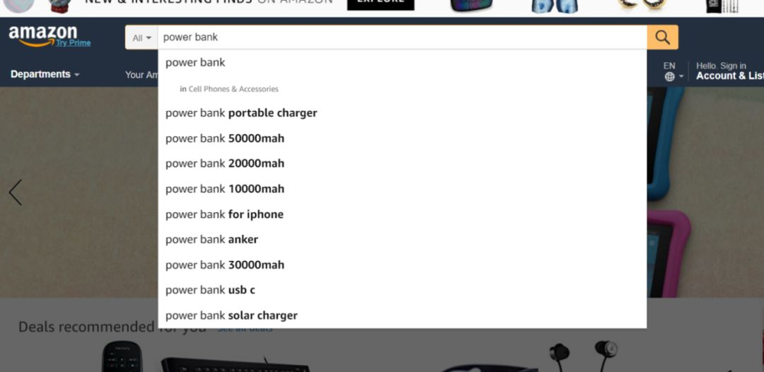 通过亚马逊搜索框下拉菜单中的Buying Keywords列表