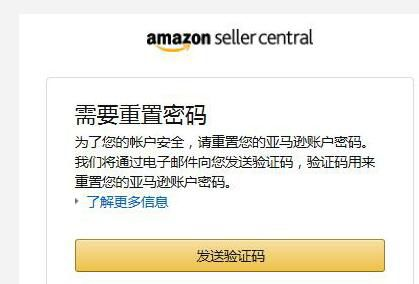 “为了您的账户安全,请重置您的亚马逊账户密码。我们将通过电子邮件向您发送验证码,验证码用来重置您的亚马逊账户密码。”接下来是一个“发送验证码”的按钮。