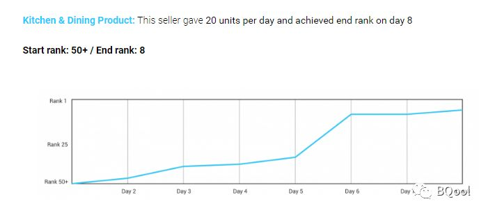 注意:数量是测试结果,可以给卖家参考,但不是完全合用!根据大小类目跟商品竞争程度,每款商品可能都有不同的结果。而 BQool 的排名客,就是按照这个思路来提升商品排名(BSR)而开发出来的服务。