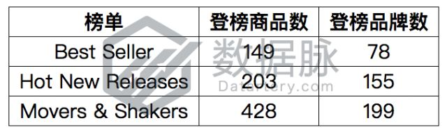 根据上周 Movers & Shakers 榜单上各个品牌下商品的登榜次数,我们对登榜的品牌进行了排序,其中排名靠前的五个品牌如下所示: