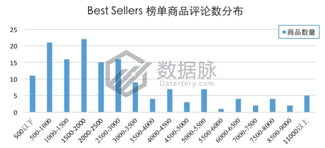 在上周登榜Pet Supplies品类Best Sellers榜单的商品中,单个商品拥有的最大评论数为14062条,最小评论数为192条,平均评论数3271.39条,评论平均星级4.35星。在上榜商品中,仅7.38%的商品的评论数低于500条;有14.09%商品的评论数在500条至1000条之间,有46.31%的商品评论量在1000条至3000条之间;此外骆探长(shujumai.com)发现,上周共有5款评论破万的商品进榜,占比3.36%,相较于上期分析,平均评论量有所下降。