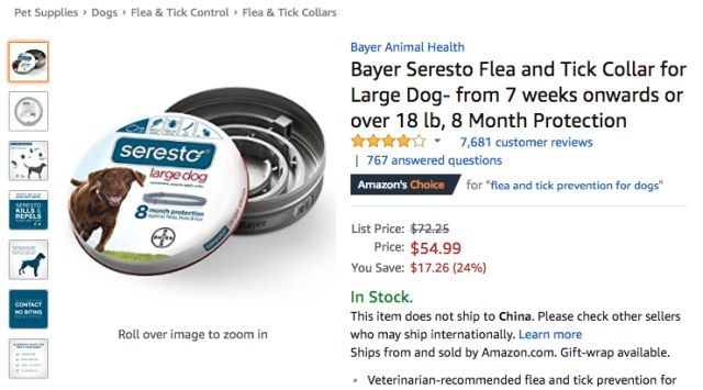 可以看到,上周Pet Supplies品类的Best Seller榜单中排名前五分别是防虫狗项圈、凝结猫砂、宠物尿垫、高蛋白狗粮和狗狗药丸囊。骆探长(shujumai.com)发现,品牌Bayer Animal Health的宠物狗防虫项圈凭借连续7天平稳位列榜单第一,以平均排名1.0的突出表现依然荣膺商品综合排名首位,虽然拜耳作为动物健康护理领域的知名老品牌,在外名声斐然,但该畅销商品平均星级仅3.9星,产品并不完美仍有被超越的空间。