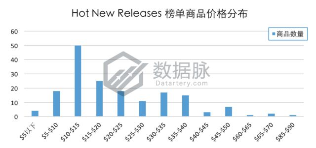 上周Pet Supplies品类Hot New Releases榜单商品最高价$85.11,最低价$0.99,平均价格$22.55。骆探长(shujumai.com)发现,相比前两期分析,本期的Hot New Releases榜单商品最低价和平均价格均有所下降;其中,依然是$10.00-$15.00区间内的上榜商品较多,占比达24.63%,有42.36%的商品价格分布在$15.00-$40.00;另有8.87%的商品价格分布在$5.00-$10.00之间。本期Hot New Releases榜单有3款商品价格超过$65,其中有一款高价商品价格超过$85。