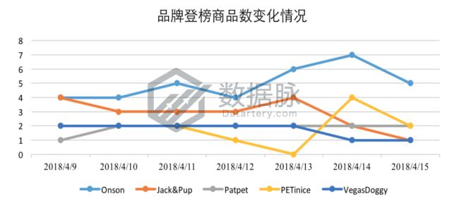 骆探长(shujumai.com)发现,在上周Pet Supplies品类的Hot New Releases榜单中,骆探长 (shujumai.com)发现,亚马逊卖家Onson异军突起以9款商品登榜、登榜总数35次的绝对优势获得品牌排行第一,该卖家在亚马逊上提供的商品品类不止于宠物用品还包括手机配件等,其中宠物用品畅销产品包括宠物汽车座套、防护充气项圈、宠物互动小玩具等,该卖家的清奇思路值得借鉴。Jack&Pup提供多种口味并营养丰富的宠物狗咀嚼棒,以帮助宠物狗清洁牙齿,结合往期的分析,该品牌连续多次挤进Hot New Releases 榜单品牌排行前五。排行第三的是品牌Patpet,专注于提供宠物狗训练的相关设备,平均星级4.8,产品口碑良好。PETinice以4款热门新品共13次登榜的表现拿下品牌排行第四,PETinice提供几款宠物防虫项圈,评论量仅80,可见,宠物防虫项圈新品市场仍有可作为的空间。VegasDoggy的新型超声波驱虫器上期登上了Hot New Releases 榜单产品排名第四,本期VegasDoggy以3款热门新品的优秀表现继续登榜。