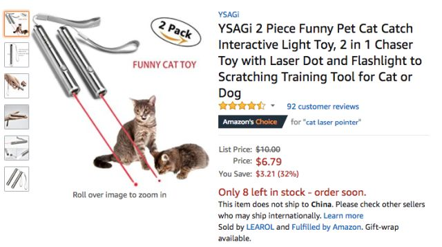 上周畅销榜以综合排名第四登榜的商品是一款带有激光和手电筒的逗猫玩具,评价数量仅87,表现实在“神勇”,该产品最高排名21,平均评价星级4.6。