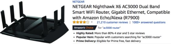 在Netgear Nighthawk X6 AC3000双频智能无线路由器下,亚马逊也列出了该产品获得“Amazon’s Choice”标签的原因: