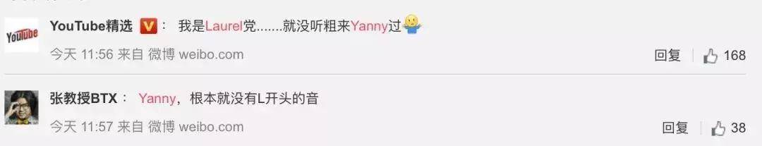 对于视频中读到的单词到底是Yanny还是Laurel,推特和微博上的网友们已经吵开了,一时之间两大阵营谁也说不动谁——