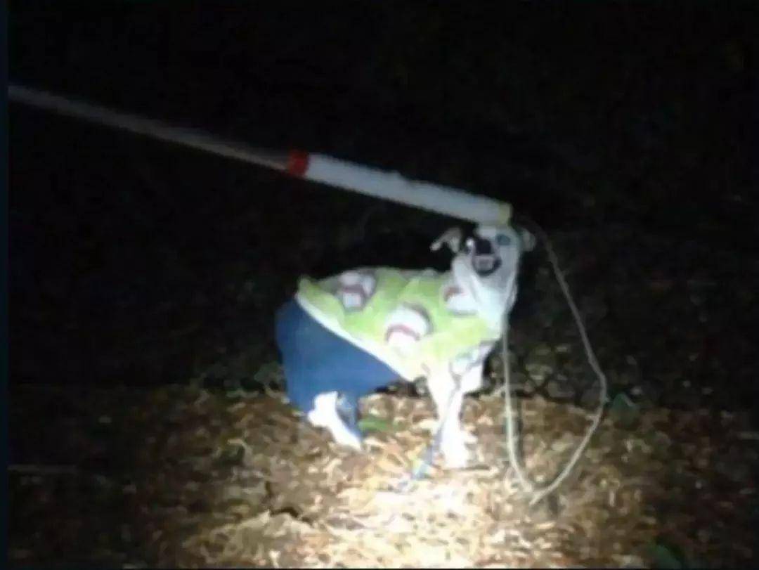 这只狗子,是穿了一件毛衣,和一条蓝色裤子吗?
