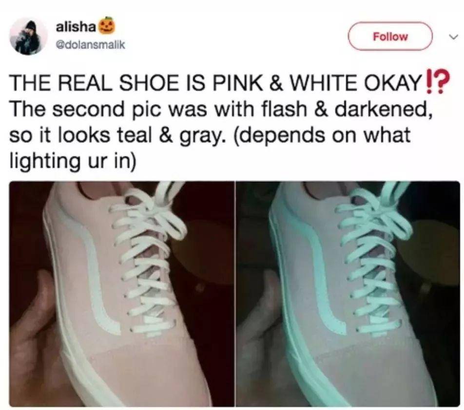 这双鞋到底是粉色+白色,还是绿色+灰色?