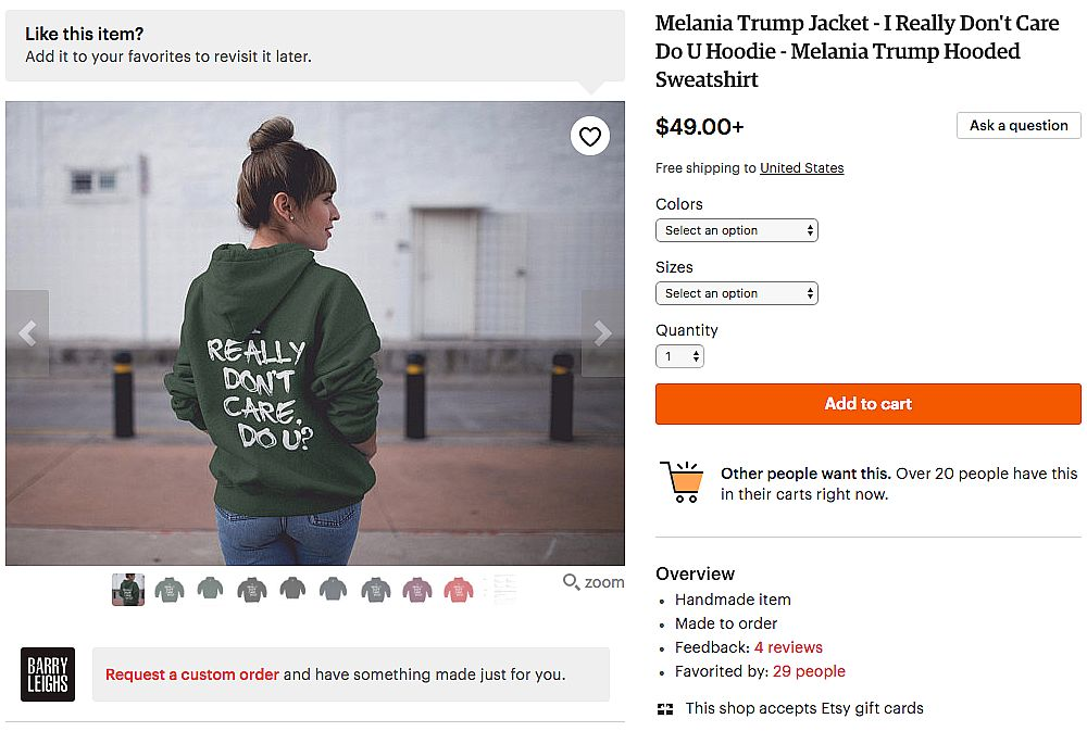 实际上,在梅拉尼娅访问了德克萨斯州几天后,许多带有该标语的物品都被列在了网上出售。