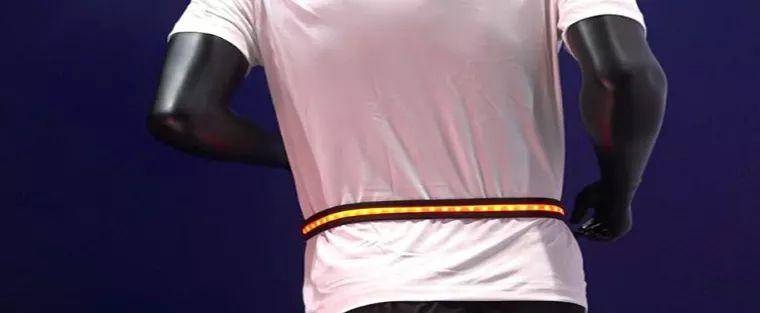 同时灯光是可调节的,在跑步状态下,腰部LED灯就会闪烁,有一百多种情景模式。骑行时还可通过按钮来控制腰部灯光,起到提醒作用,比如紧急停车,提醒后面的人不要追尾;心情愉悦的时候,可以用炫彩模式,比较时尚多样化。