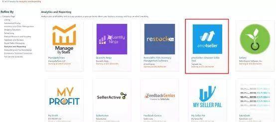 目前,amz4seller在卖家后台应用商店中的四个栏目上线,分别是: