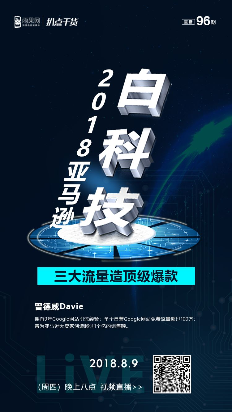 曾德威Davie,百聚汇商学院导师、亚马逊大卖家顾问、谷歌外贸学堂特聘导师。拥有9年Google网站引流经验;单个自营Google网站免费流量超过100万;曾为亚马逊大卖家创造超过1个亿的销售额。