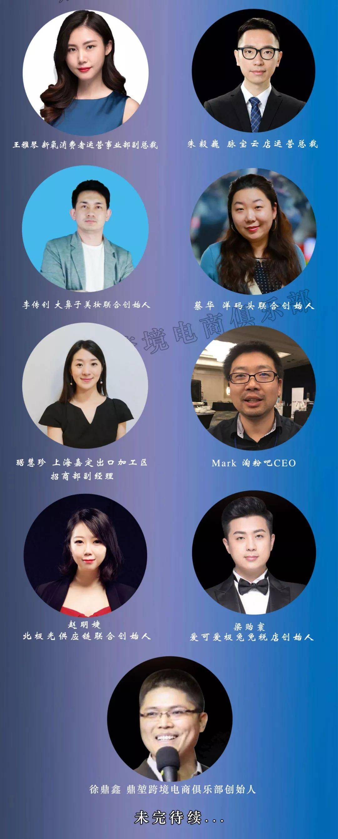 本次鼎堃跨境电商俱乐部的“两会”还有3天(9月9日 星期天)就将开幕了。本次大会聚集了海内外电商圈的各路英雄豪杰共聚申城(地点:上海市浦东新区碧波路699号 博雅酒店),共话电商。我们继续本着大咖云集的态度,诚邀进出口电商行业众多重量级CEO集结。规模宏大且参会规模逾3000人!嘉宾们将会分享干货满满接地气的行业趋势及运营实操,相信众多嘉宾肯定会让你眼前一亮。