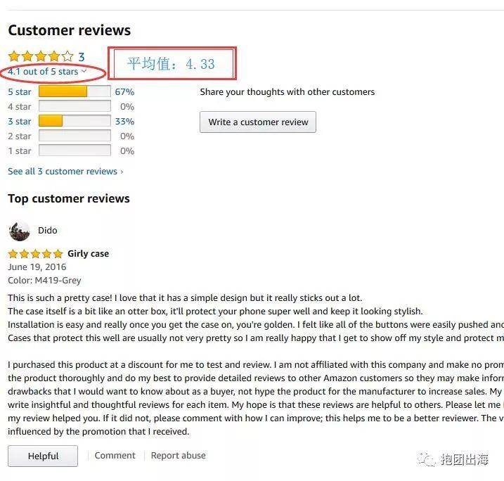 三个评论都不带VP,平均分是:4.33,实际分是:4.1