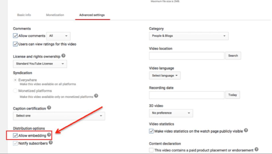 这个功能主要是能让我们在YouTube之外展示我们的视频。虽然说不在YouTube的范围里了,但是YouTube还是会记录下,每次我们的视频被别人嵌入到其他地方的时候。这对我们的SEO也是很有好处的。