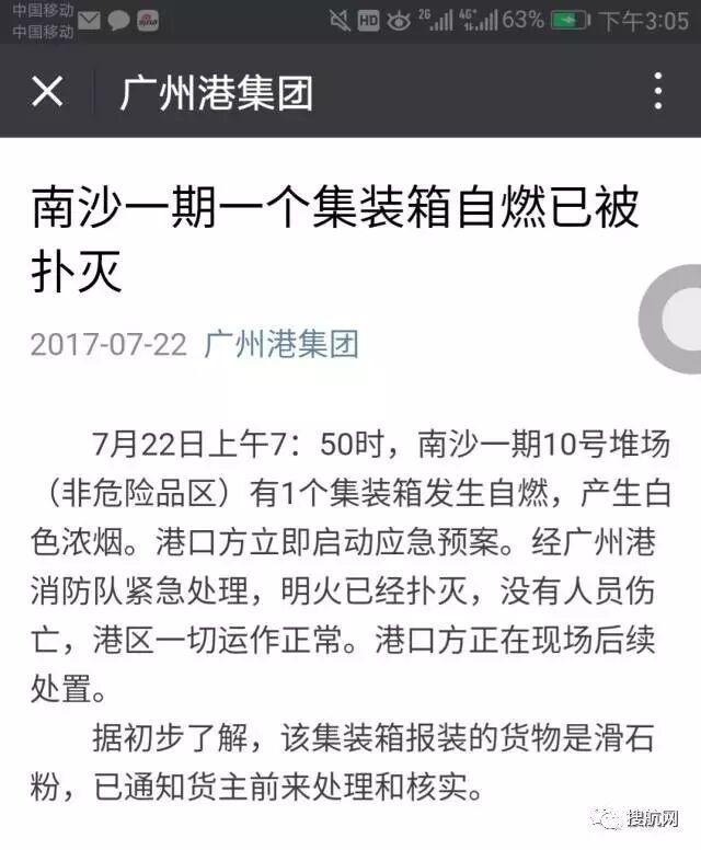 早在事故发生前的7月17日,广州集装箱码头公司就已经将危险品场地封闭,并暂停危险品申报。