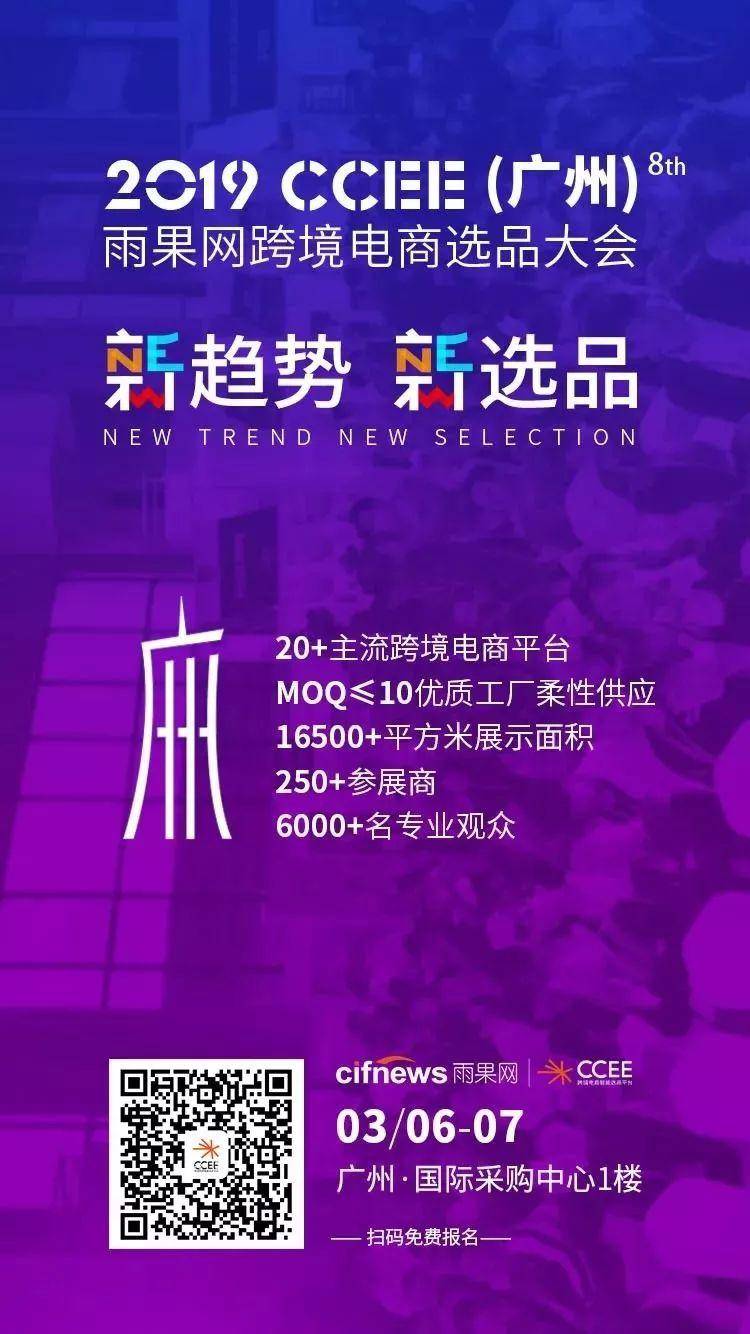 2019选品没思路?2019年3月6日-7日,2019CCEE雨果网跨境电商选品大会打响开年第一枪,相约广州国际采购中心1F,头部卖家、行业大咖、平台官方齐聚一堂,行业前沿资讯,大卖打法、思维,真知灼见、百家工厂、百万SKU,为你备齐过冬“食粮”。