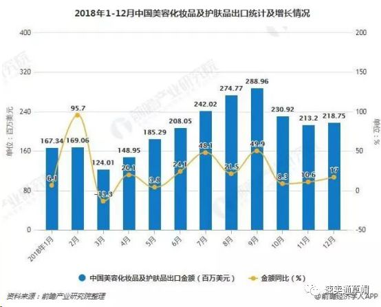 其实,早在过去的五六年里,中国美容化妆品及护肤品就已经凭借高性价比优势,发力海外市场且一路高歌猛进。相关数据显示,2018年中国美妆出口金额约25亿美元,同比增长21.5%。尤其在国外电商市场不断开发的情况下,越来越多国内美妆产品借助跨境电商平台直接销往海外终端消费者。