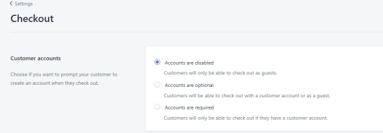 “Customer accounts(客户账户)”这个设置是,在客户下单时是否强制要求客户创建账户,