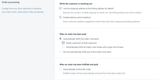 “Order processing(订单处理)”设置客户下单到结款这过程中的通知。