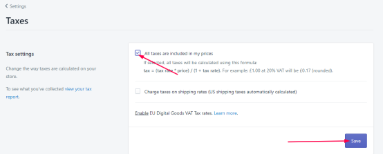 这一步就很简单了,点击到“Taxes(税费)”界面,勾选“All taxes are included in my prices(所有价格含税)”,然后单击“保存”就OK了。
