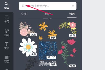 在左边的搜索框中,可以搜索与你品牌有关的图片。你可以从中选择一个,放到logo中。