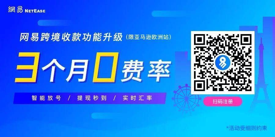 本次网易跨境支付进行系统功能升级,为中国优质的跨境卖家企业输出亚马逊收款服务,满足不同类型商户跨境收款需求,欢迎更多合作伙伴的加入。亚马逊欧洲站活动详情请见“大优惠!欧洲站3个月0费率!”或网易跨境支付官网。更多优享活动请关注网易跨境支付微信公众号。