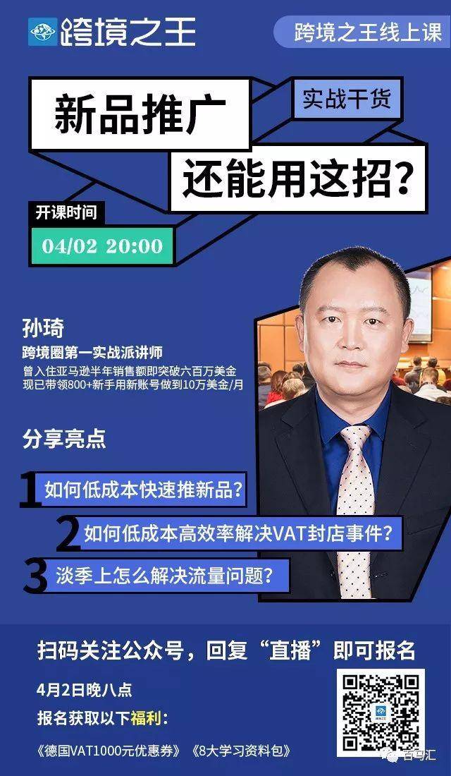 除了文案、图片、定价外,还有FBA发货数量、CPC广告策略、Review计划、QA技巧及促销等等方法可以推动低成本推新品,这些技巧,将会在明天晚上八点钟的直播展示。届时我们的讲师孙教官将和我们讲述低成本推新的技巧、解决产品流量问题的策略以及VAT封店事件的解决方法。
