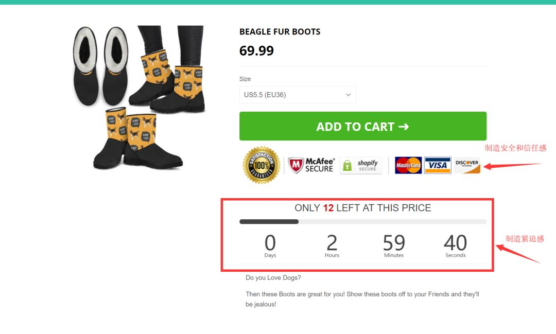 营造一种时间紧迫,产品稀缺的氛围,来刺激消费。正所谓“过了这个村,就没这个店”,利用这种心理可以大大提高转化率。