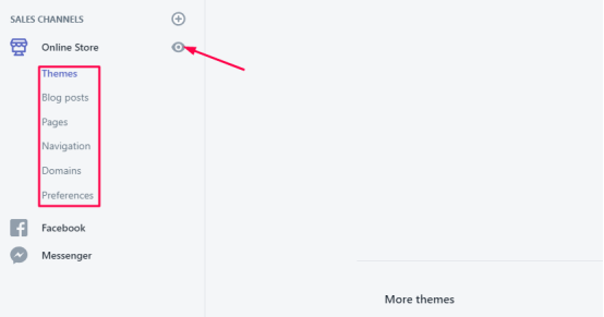 在设计店铺时有3个很重要的元素:页面(Pages),导航(Navigation),主题(Theme),其中主题是最重要的。