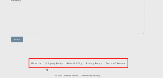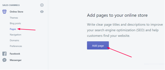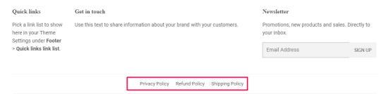 可以添加“隐私政策(Privacy Policy)”,“退款政策(Refund Policy)”,“服务项目(Terms of Service)”,“物流信息(Shipping Information)”等页面。