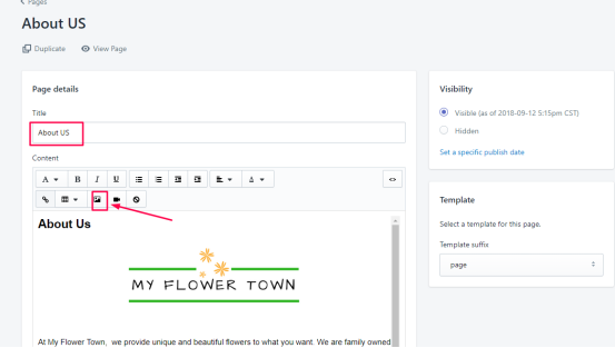 比如,要添加一个“about us”页面,在“Content”栏里面写关于你店铺的介绍,品牌故事之类的信息。