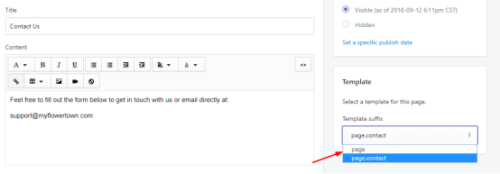 可以点击右边的Template中的“page.contact”很快建立模板。