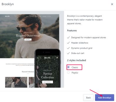 点击“Brooklyn”,在主题界面点击“Classic(经典款)”和“添加Brooklyn(Add Brooklyn)”