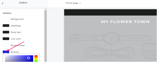 点击页面左侧栏的“主题设置(Theme settings)”下的“颜色(Colors)”,点击“按钮(button)”旁边的颜色,就可以选颜色了,然后点击“保存”。