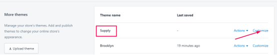 接着我们来上传再网上下载好的主题“Supply”,并进行自定义“Customize”。
