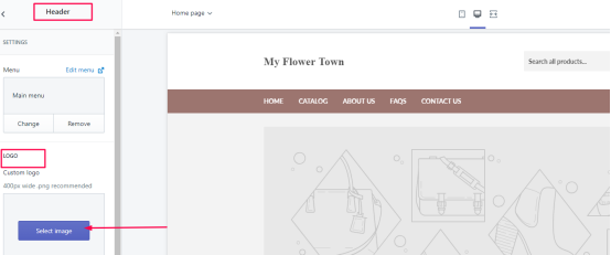 在店铺页面的“Header”里面可以上传logo,修改“通告栏(ANNOUNCEMENT BAR)”的内容。