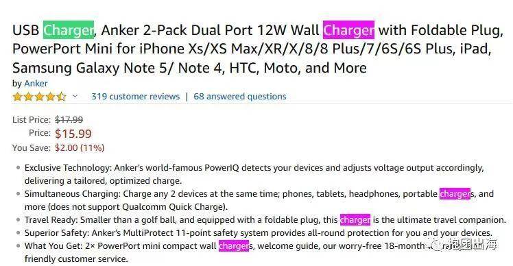 这样子,我们把8个单词直接压缩成4个单词,可以大大提高标题的利用率,而且,我们在不同的时期,在不改标题的情况下,可以优化三个词中的任何一个词。而对于亚马逊爬虫来说,优先组合连着的词,其次才是跳词组合。