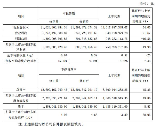 2018 年末总资产余额为 12,501,347,391.19 元,比期初增长 45.35%;报告期末归属于上市公司股东的所有者权益为 7,292,847,763.11 元,比期初增长 49.86%;报告期末股本 1,558,041,330.00 元,比期初增长 8.57%,报告期末每股净资产为 4.68 元,比期初上升了 38.05%。