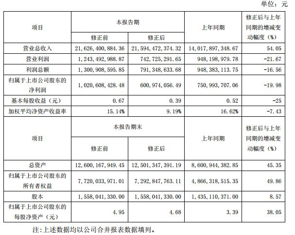 2018 年末总资产余额为 12,501,347,391.19 元,比期初增长 45.35%;报告期末归属于上市公司股东的所有者权益为 7,292,847,763.11 元,比期初增长 49.86%;报告期末股本 1,558,041,330.00 元,比期初增长 8.57%,报告期末每股净资产为 4.68 元,比期初上升了 38.05%。