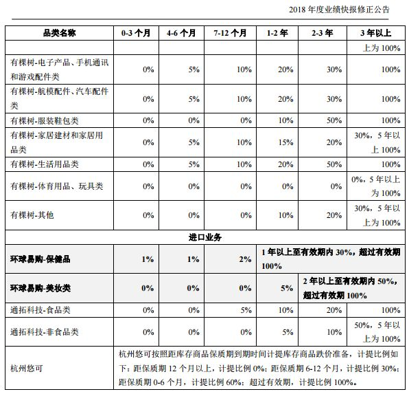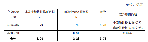 二是受流动性趋紧影响,在外部银行融资政策收紧下,环球易购在 2018 年三季度和四季度受到银行放款放缓影响较为明显,2018 年银行渠道融资减少约 7 至 8 亿元,使得环球易购在四季度销售旺季未能如预期进行广告投入和促销推广,部分历史存货错过了销售的最佳时机。环球易购将部分一年以上存货通过个别法全额计提存货跌价准备,一方面更充分、公允反映了 2018 年末时点的环球易购资产状况,使其财务信息更加可靠,有利于投资者了解经 营情况;另一方面,环球易购结合外部经济形势变化趋势,及时将战略重点从规模扩张转变为盈利能力及盈利质量的夯实,更注重现金回流能力及存货周转率,聚焦盈利能力及盈利质量的提升。本次计提存货跌价准备不涉及会计政策或会计估计的变更,系环球易购根据产品品类属性、产品存储区域、公司销售经营策略等情况确定的存货跌价准备计提。截至本公告发布之 日,结合环球易购期后实际情况,2018 年末存货跌价准备已经充分计提,库存减值风险得 到如实反映。