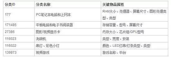 公告展示了相关物品属性更新的细节,其涵盖了PC笔记本电脑和上网本、平板电脑和电子书阅读器、图形/视频显示卡、洗碗机等。