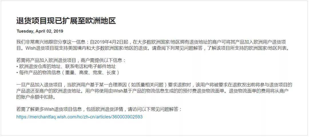 好消息!好消息!继美国之后,Wish退货项目正式拓展到欧洲啦!就这样,Wish退货项目已经了覆盖美国和欧洲。