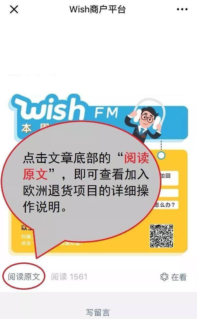 如何正确地加入Wish欧洲路向的退货项目呢?有单独启用和批量加入两种形式,点击本文文章底部的“阅读原文”,即可查看操作的详细说明。(其实,具体操作和开通美国退货项目的操作很相似~)