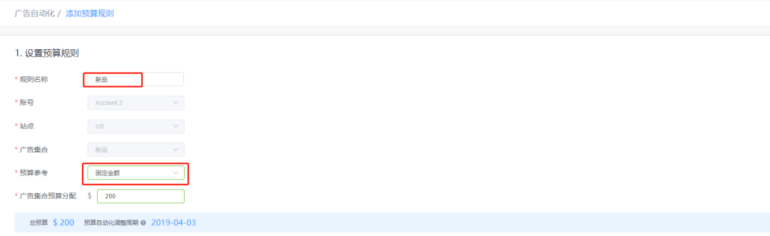 设置新品广告时,缺乏历史数据的情况下,根据未来的销售额预估,可以设一个固定的金额作为广 告预算。