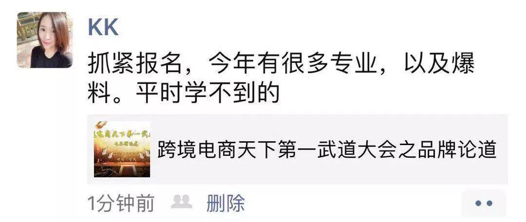 从首届进博会到电商法的实施,未来的跨境之路在何方,行业经历了数论洗牌之后留下了什么呢?没错,缺产品!所以,本届“跨境电商天下第一武道大会之品牌论道”力求为大家打通任督二脉。江湖论道、高手竞技,全球跨境武林高手齐聚江湖只为给你一场不一样的跨境盛典!预报名请点击“阅读原文”!